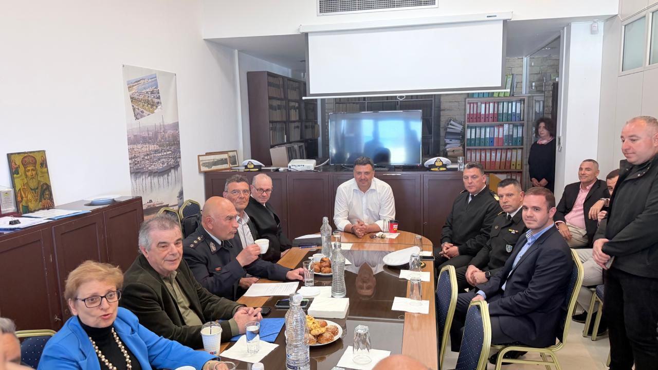 Στη συνέχεια, μετέβη στο Δημοτικό Λιμενικό Ταμείο Ρεθύμνου όπου πραγματοποίησε σύσκεψη με τη συμμετοχή βουλευτών του νομού, της Αντιπεριφερειάρχη, Μαρίας Λιονή, του Αντιδημάρχου Πολιτικής Προστασίας, Γεώργιου Σκορδίλη, του Δημάρχου του Αγίου Βασιλείου Ρεθύμνου, Ιωάννη Ταταράκη, του Προέδρου του Λιμενικού Ταμείου, Βασίλειου Θεοδωράκη και του Αναπληρωτή Αστυνομικού Διευθυντή, Στυλιανού Σταυρουλάκη, κατά τη διάρκεια της οποίας ο Υπουργός ενημερώθηκε διεξοδικά για ζητήματα και θέματα που αφορούν στην τοπική κοινωνία, στις ανάγκες και στις υποδομές του νησιού.