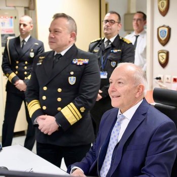 Στη συνέχεια, ο Υφυπουργός Ναυτιλίας και Νησιωτικής Πολιτικής, μετέβη στο Ενιαίο Κέντρο Συντονισμού Έρευνας Διάσωσης (Ε.Κ.Σ.Ε.Δ.) του Αρχηγείου Λ.Σ-ΕΛ.ΑΚΤ. όπου είχε την ευκαιρία - εκπροσωπώντας τον Υπουργό Ναυτιλίας και Νησιωτικής Πολιτικής, Βασίλη Κικίλια - να επικοινωνήσει με δύο ποντοπόρα πλοία που βρίσκονται εν πλω (το “MARAN LYNX” στον Ινδικό Ωκεανό και το “ΑΝΔΡΟΜΕΔΑ” στη Μεσόγειο), καθώς και με δύο πλωτά περιπολικά του Λ.Σ-ΕΛ.ΑΚΤ. που εκτελούν αποστολή.