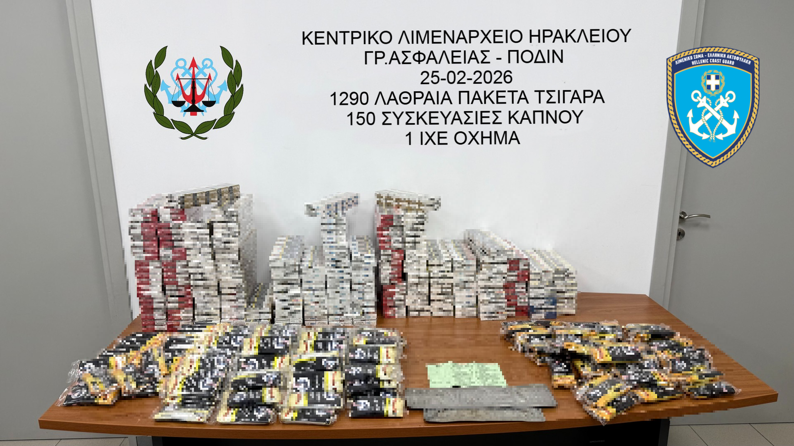 Από το Κεντρικό Λιμεναρχείο Ηρακλείου που διενεργεί την προανάκριση, κατασχέθηκαν τα ανωτέρω καπνικά προϊόντα καθώς και το Ι.Χ.Ε. όχημα, ενώ οι δύο έτεροι δράστες αναζητούνται στο πλαίσιο της αυτόφωρης διαδικασίας.