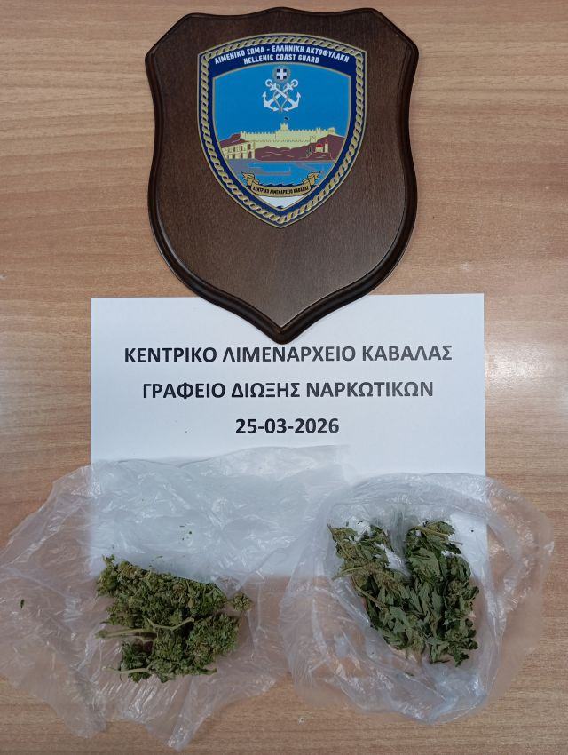 Ειδικότερα, στο πλαίσιο ελέγχων για τη πρόληψη και τη καταστολή έκνομων ενεργειών από στελέχη του Γραφείου Δίωξης Ναρκωτικών της Λιμενικής Αρχής της Καβάλας, με τη συνδρομή του αστυνομικού σκύλου ανίχνευσης ναρκωτικών ουσιών «ΘΟΡ», πριν τον απόπλου επιβατηγού-οχηματαγωγού (Ε/Γ-Ο/Γ) πλοίου με προορισμό το λιμάνι της Λέσβου, εντοπίστηκε ο 57χρονος να έχει στην κατοχή του δύο (02) νάιλον συσκευασίες περιέχουσες ακατέργαστη κάνναβη, συνολικού μικτού βάρους 25,3 γραμμαρίων.
