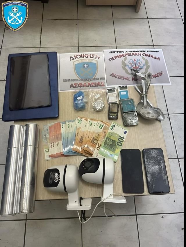 Στη συνέχεια πραγματοποιήθηκε νόμιμη έρευνα σε έτερο διαμέρισμα παρακείμενης πολυκατοικίας, όπου εντοπίστηκε και συνελήφθη ο 37χρονος ημεδαπός. Κατά τη διάρκεια της έρευνας βρέθηκαν και κατασχέθηκαν το ποσό των δύο χιλιάδων εξήντα ευρώ (2.060 €), δύο κάμερες επιτήρησης, οι οποίες επόπτευαν τις εισόδους των δύο διαμερισμάτων και μεγάλο τμήμα της οδού, δύο κινητά τηλέφωνα και κλειδιά τα οποία αντιστοιχούσαν στο προαναφερθέν ισόγειο διαμέρισμα. Από το Κεντρικό Λιμεναρχείο Πειραιά που διενεργεί την προανάκριση, κατασχέθηκε επιπλέον ένα δίκυκλο όχημα ως μέσο διακίνησης και πώλησης ναρκωτικών ουσιών.