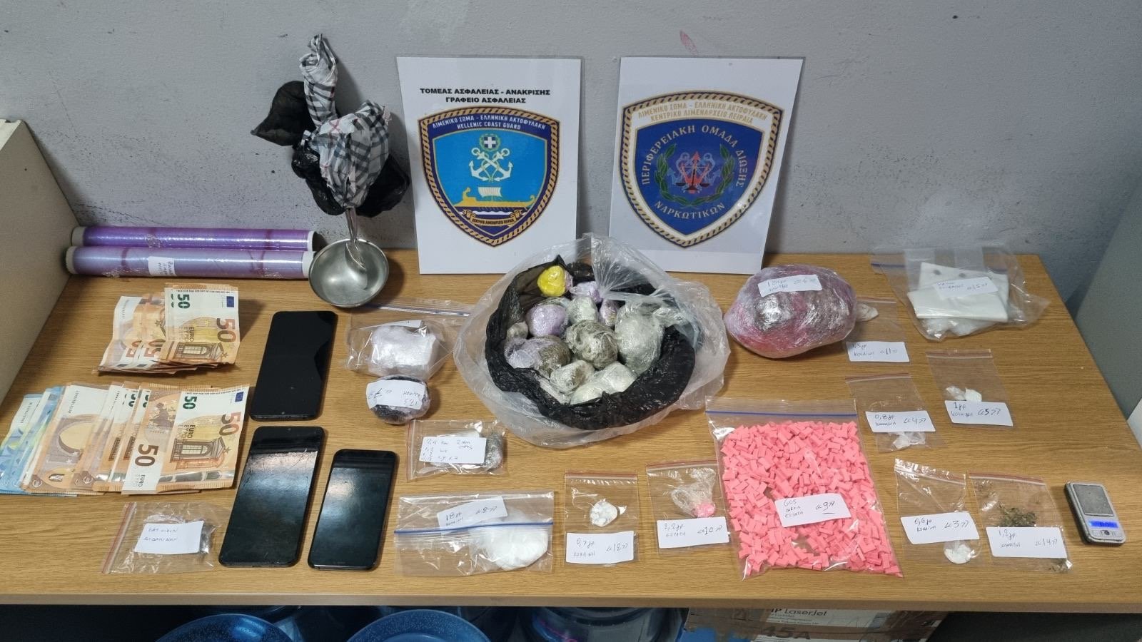 Από το Κεντρικό Λιμεναρχείο Πειραιά που διενεργεί την προανάκριση, κατασχέθηκαν οι ανωτέρω ναρκωτικές ουσίες, το χρηματικό πόσο των 1.470€, τρεις συσκευές κινητής τηλεφωνίας καθώς και το Ι.Χ.Ε. όχημα.