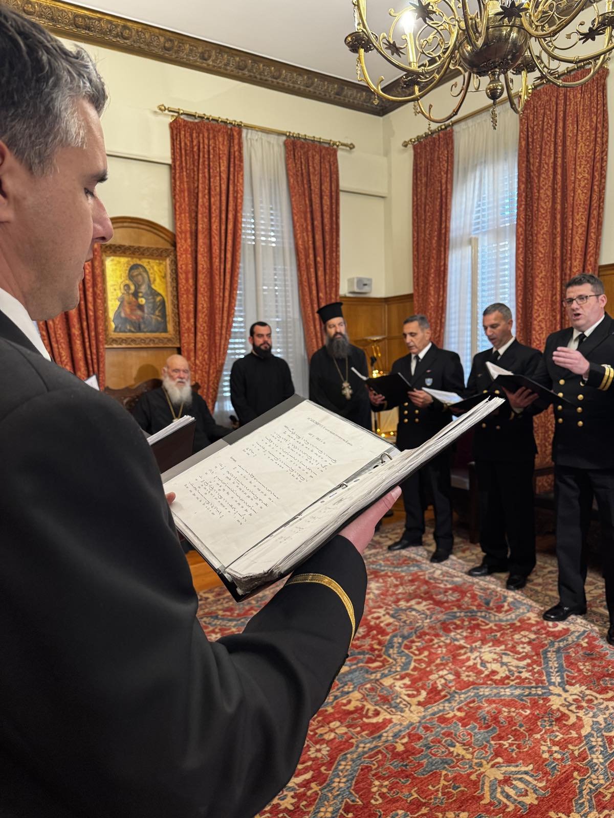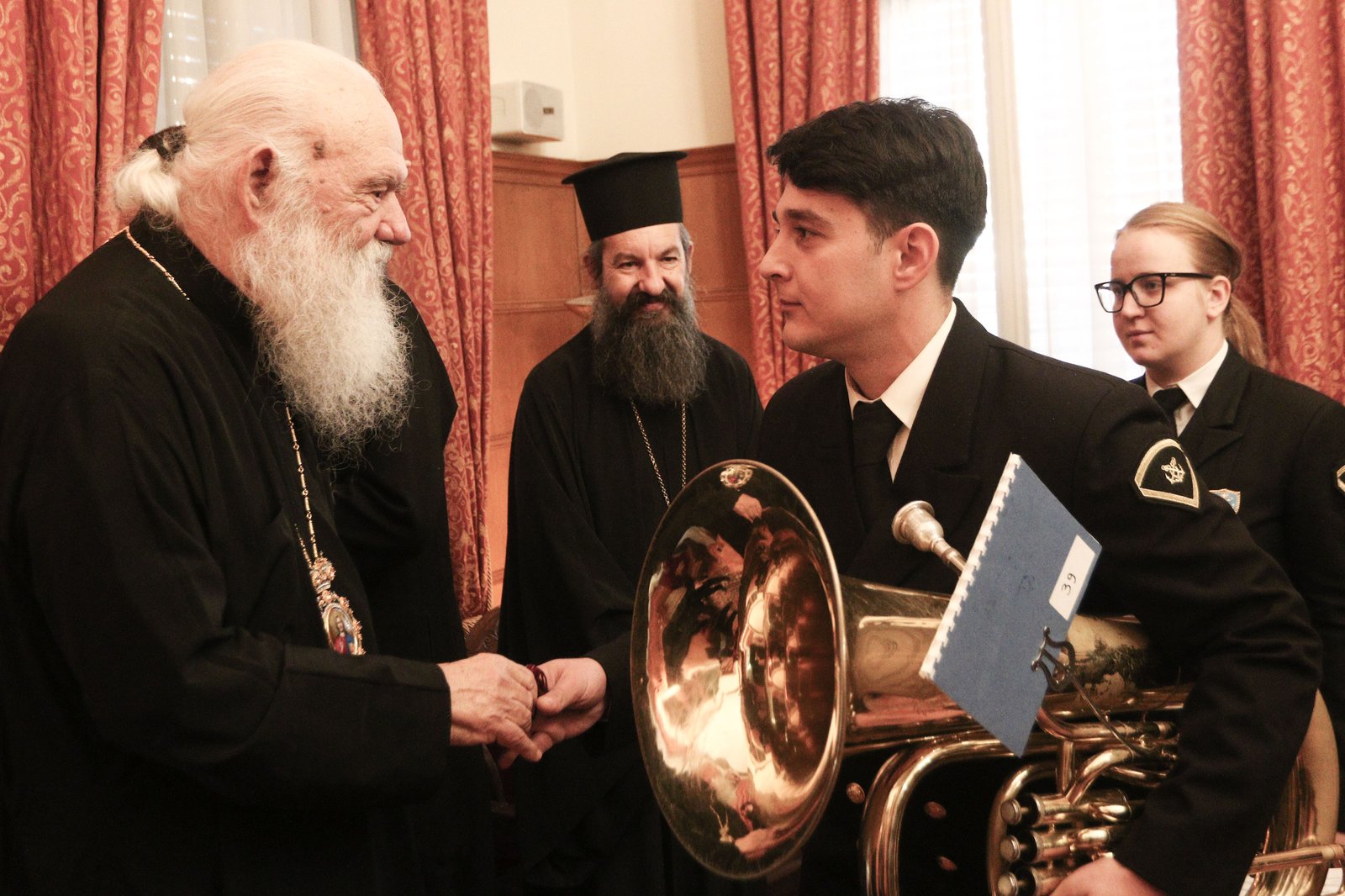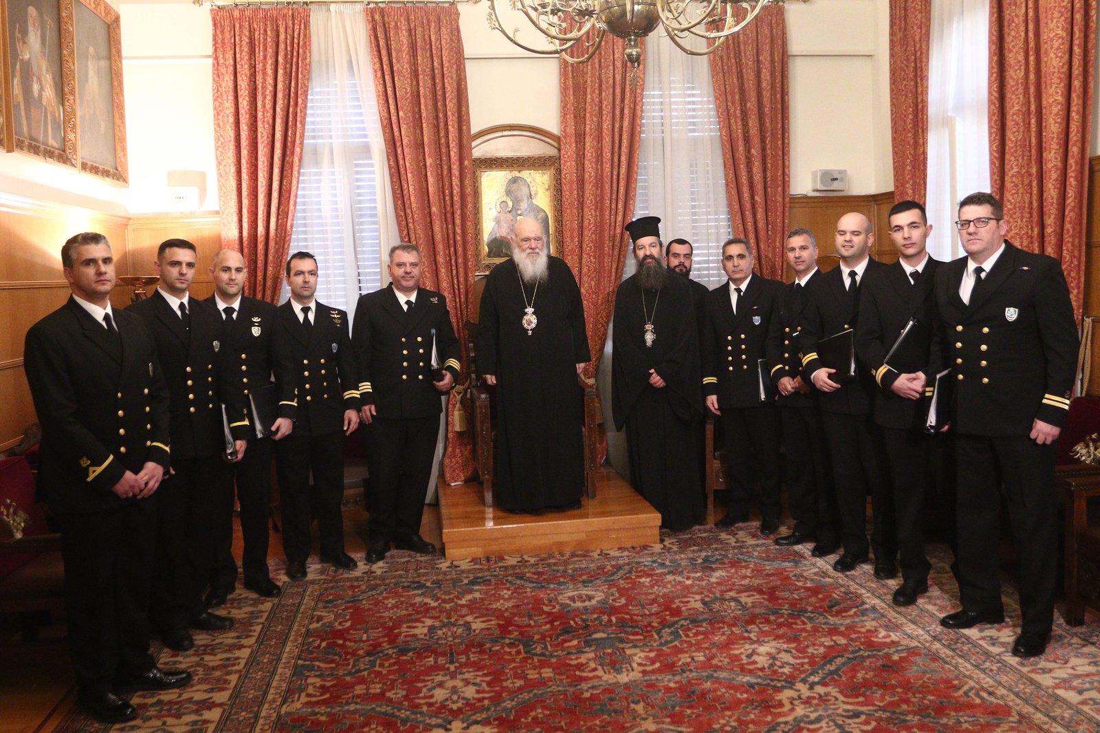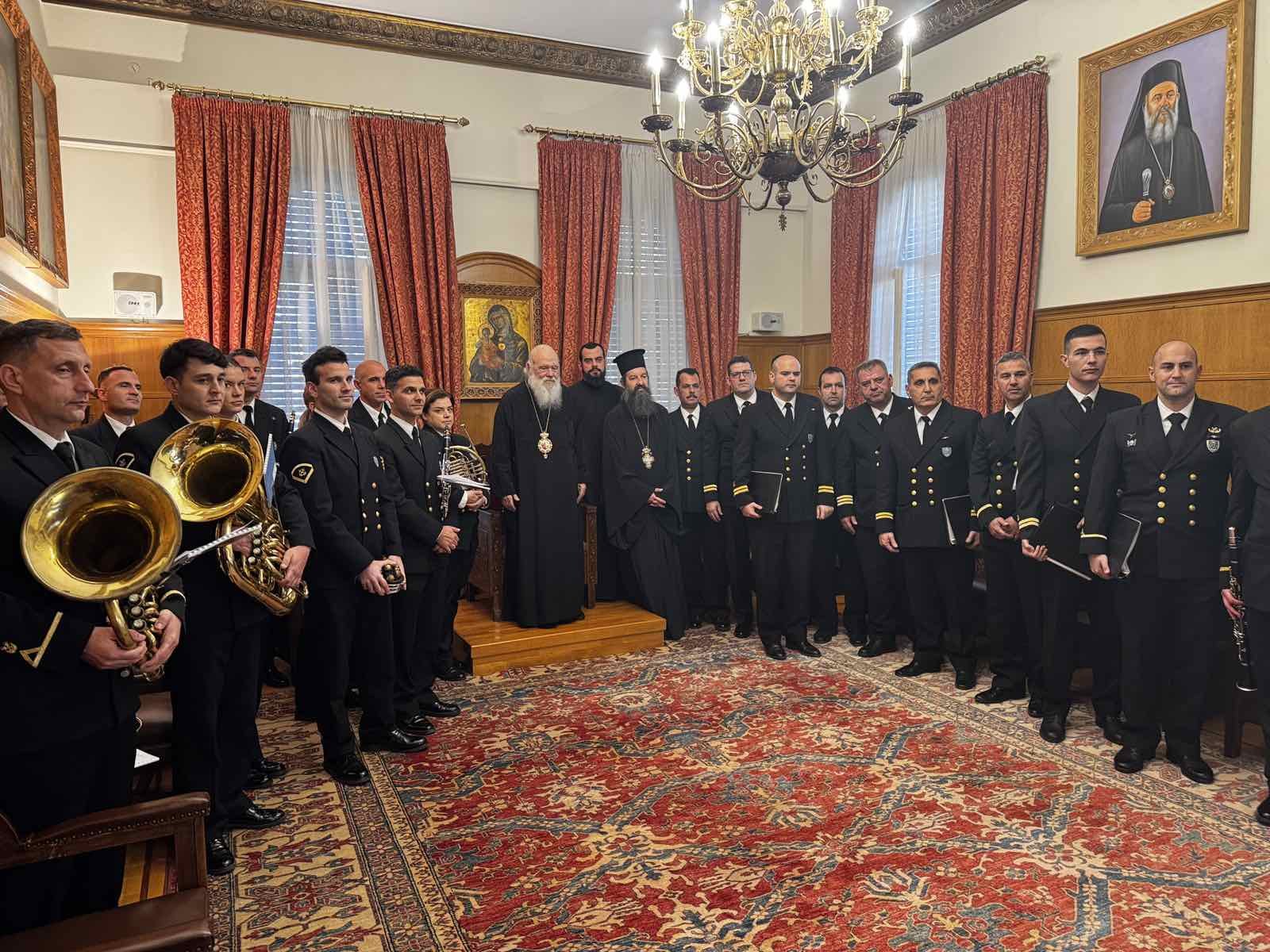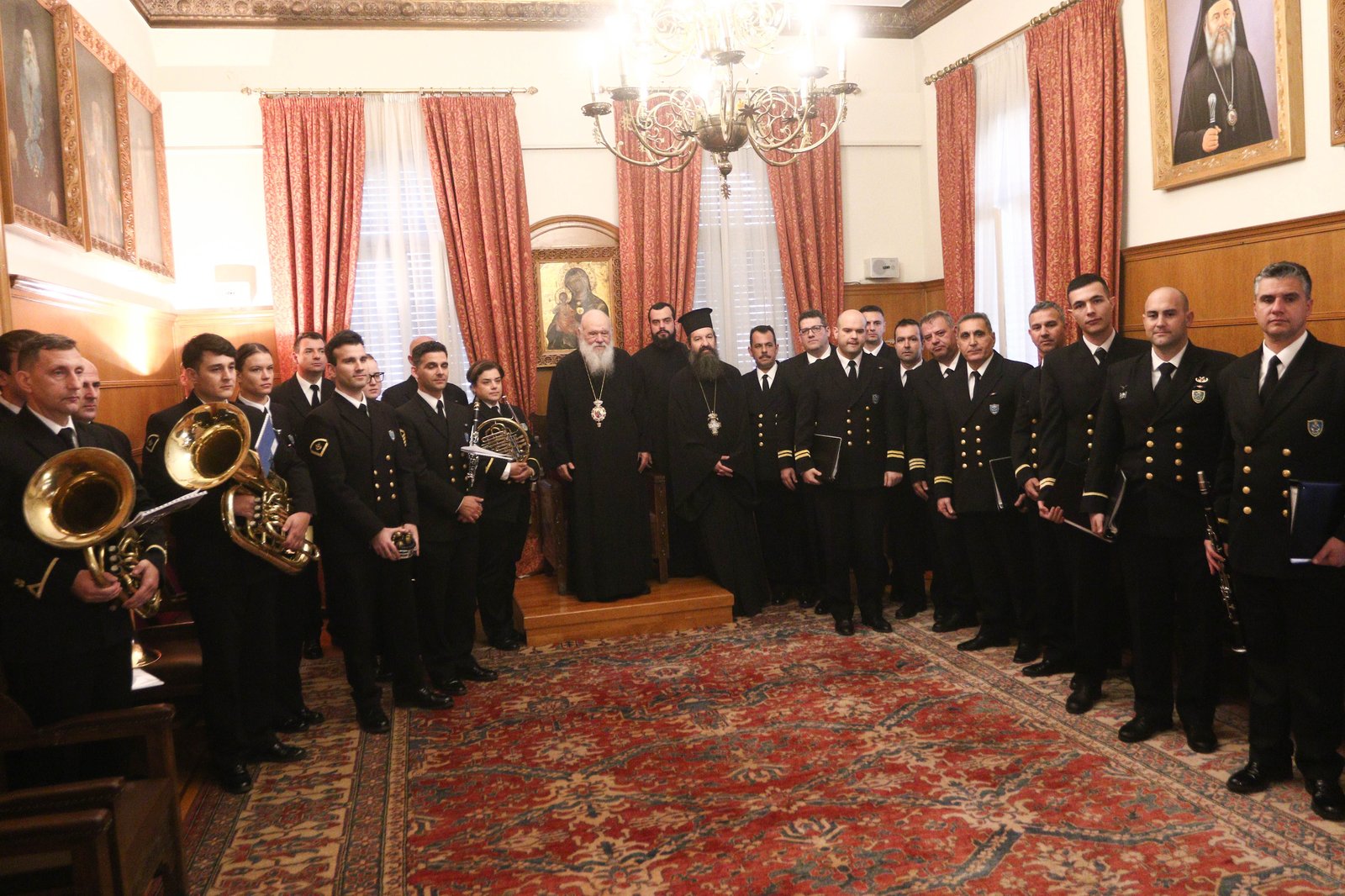 Χριστουγεννιάτικους ύμνους και κάλαντα έψαλε στον Μακαριώτατο Αρχιεπίσκοπο Αθηνών και Πάσης Ελλάδος κ.κ. Ιερώνυμο η Βυζαντινή Χορωδία του Λιμενικού Σώματος – Ελληνικής Ακτοφυλακής με χοράρχη τον Ανθυποπλοίαρχο Λ.Σ. ΚΑΤΣΙΚΟΓΙΩΡΓΟ Δημήτριο. Επίσης παραδοσιακά κάλαντα από όλη την Ελλάδα έπαιξε η Υπηρεσία Μουσικής του Λιμενικού Σώματος – Ελληνικής Ακτοφυλακής υπό την καθοδήγηση του Υποπλοιάρχου Λ.Σ. ΝΙΝΟΥ Δημητρίου.